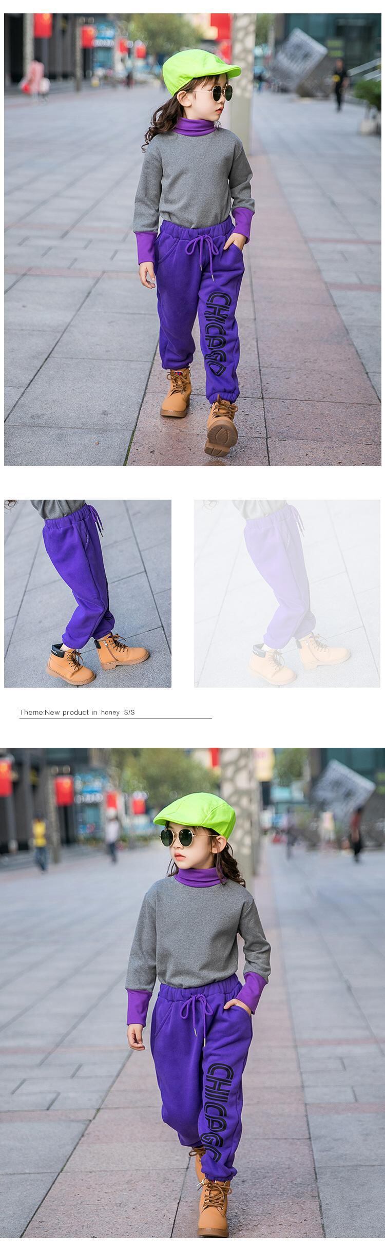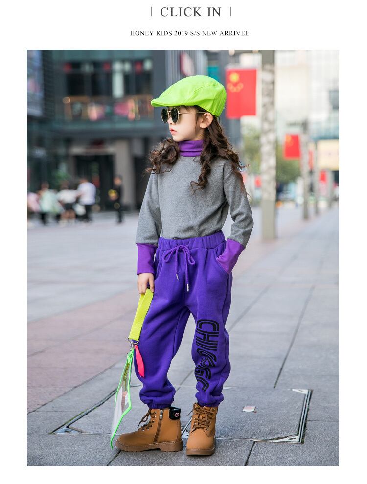 ガールズカジュアルパンツプラスベルベットスウェットパンツ2019新しい冬のロングパンツ、大きな子供用の厚手のパンツ秋と冬 トレンディボーイ28083238154
