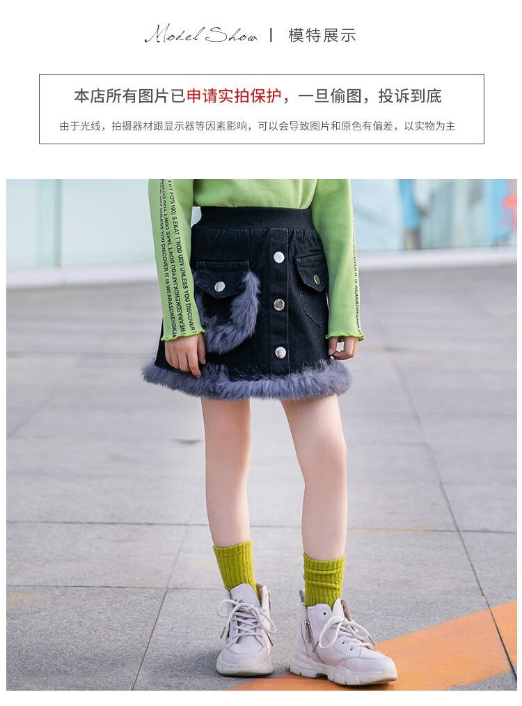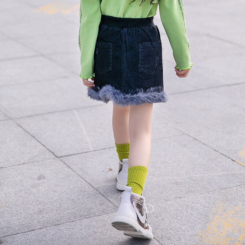ガールズプラスフリーススカートベビーデニムスカート2019秋冬新作キッズバッグヒップスカートショートスカートAラインスカートバージョン トレンディボーイ5008413281