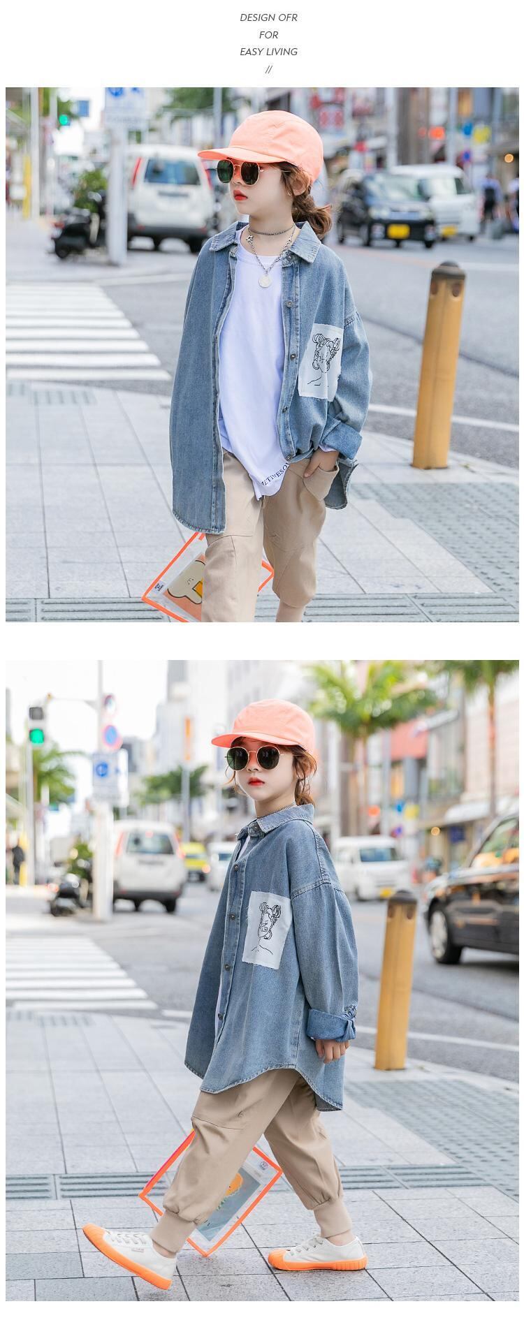 ガールズデニムシャツ2021新春秋エインスタイルキッズオータムジャケットアウターシャツベビートップ トレンディボーイ44089512331