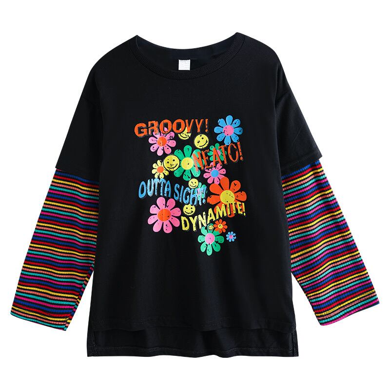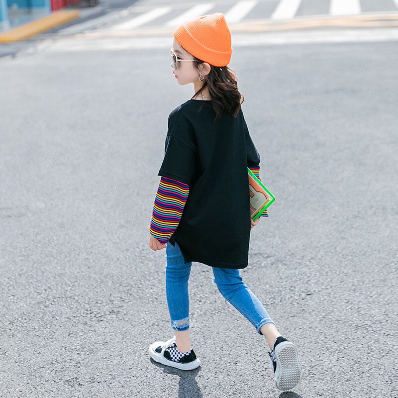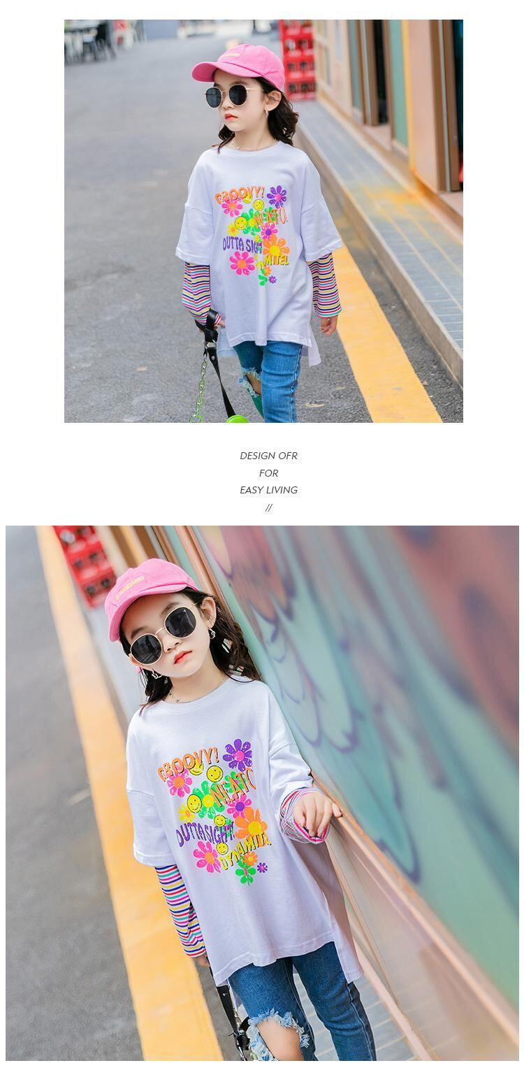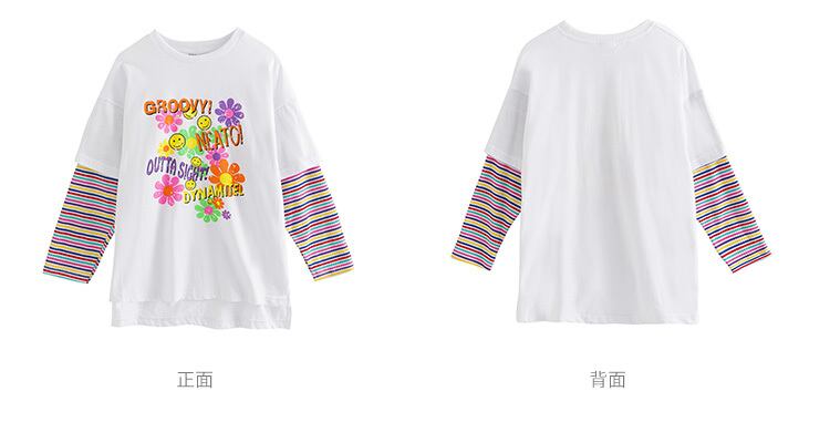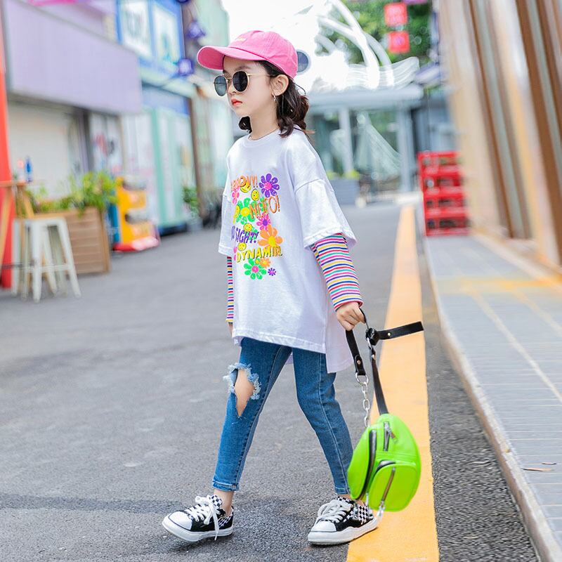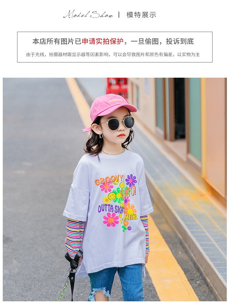 ガールズTシャツ2021新しい春の子供用バージョンのウエスタンスタイルのプリント子供服、大きな子供用のフェイク2ルーストップ トレンディボーイ40161339153