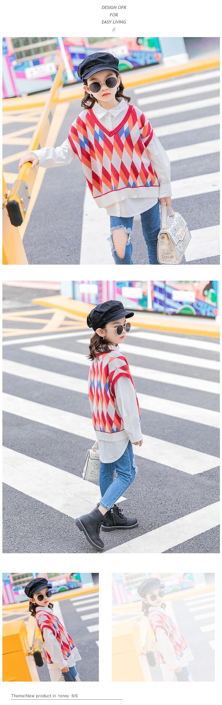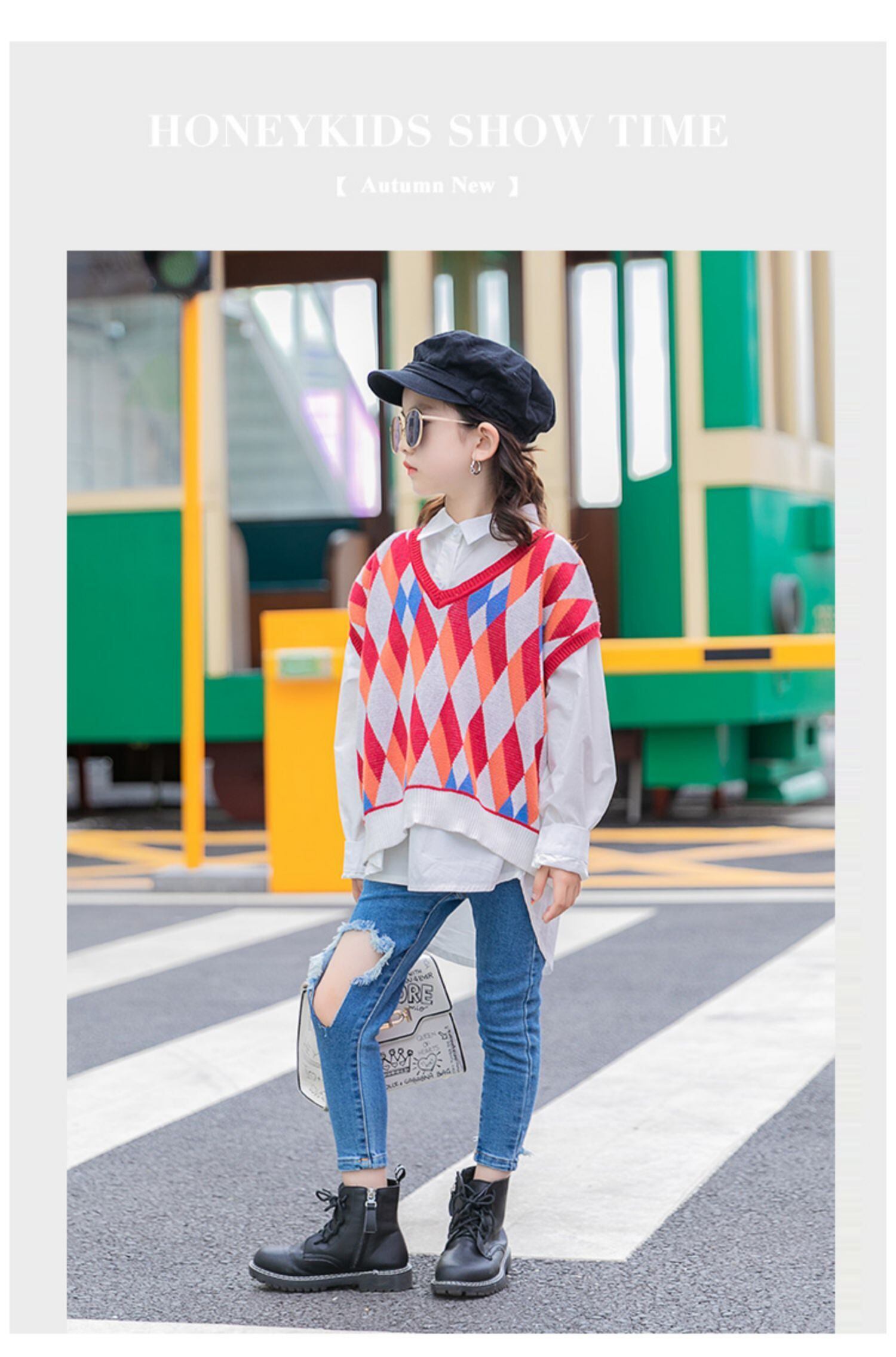 女の子の春のスーツ2021新しい洋風ファッショナブルなシャツチェック柄のセーターツーピースの子供たちのカジュアルな春と秋の服 トレンディボーイ38977328616