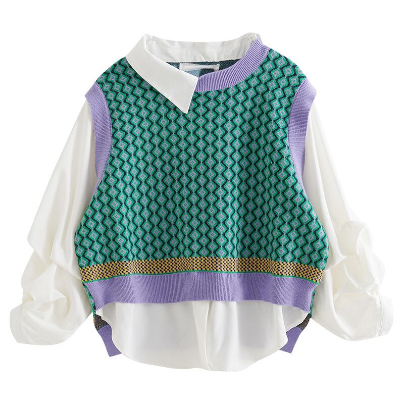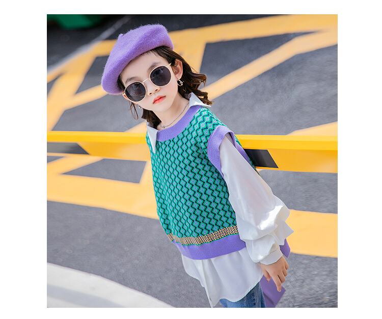 女の子の春のセーター2021新しい中年の子供たちのeignスタイルの偽のツーピースセーター子供たちのファッショナブルなプルオーバートップス トレンディボーイ81938278379