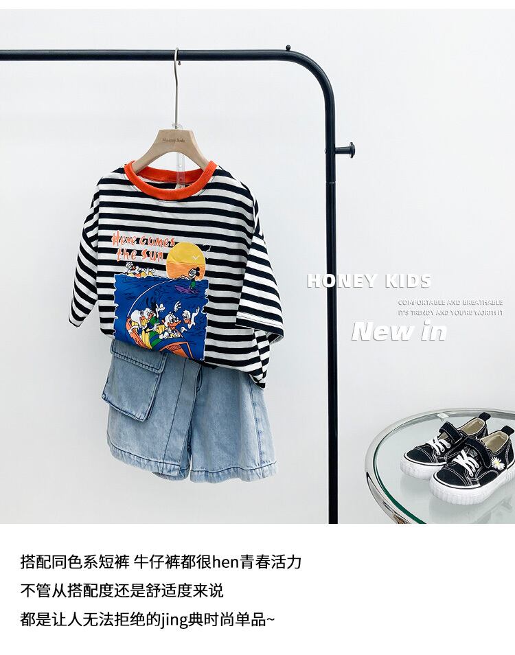 Tシャツ サマースタイルルーズストライプ コットン 夏物 ピュア トレンディボーイ42006623321